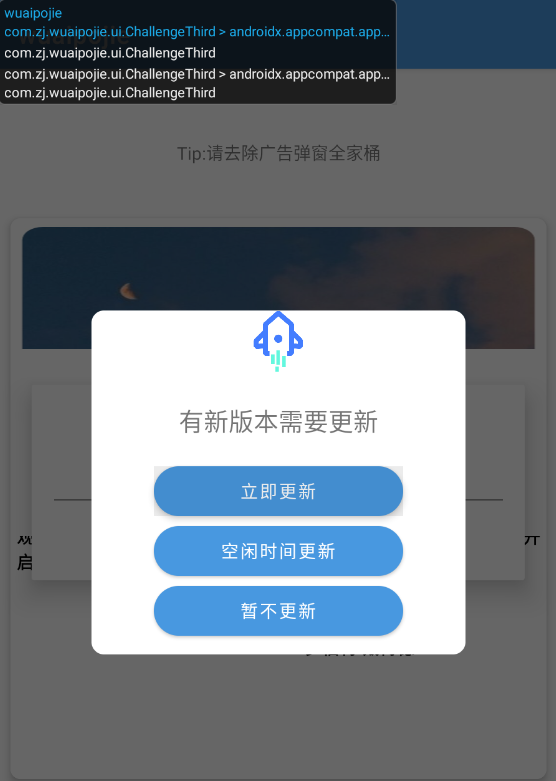 然后我们就可以发现后面是没有版本更新弹窗提示了