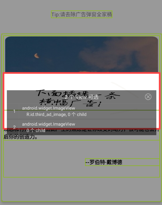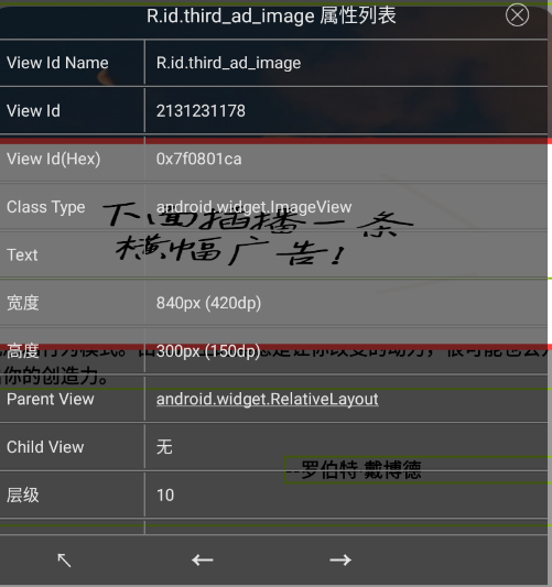 然后我们使用开发助手,可以抓到这个横幅广告的属性
